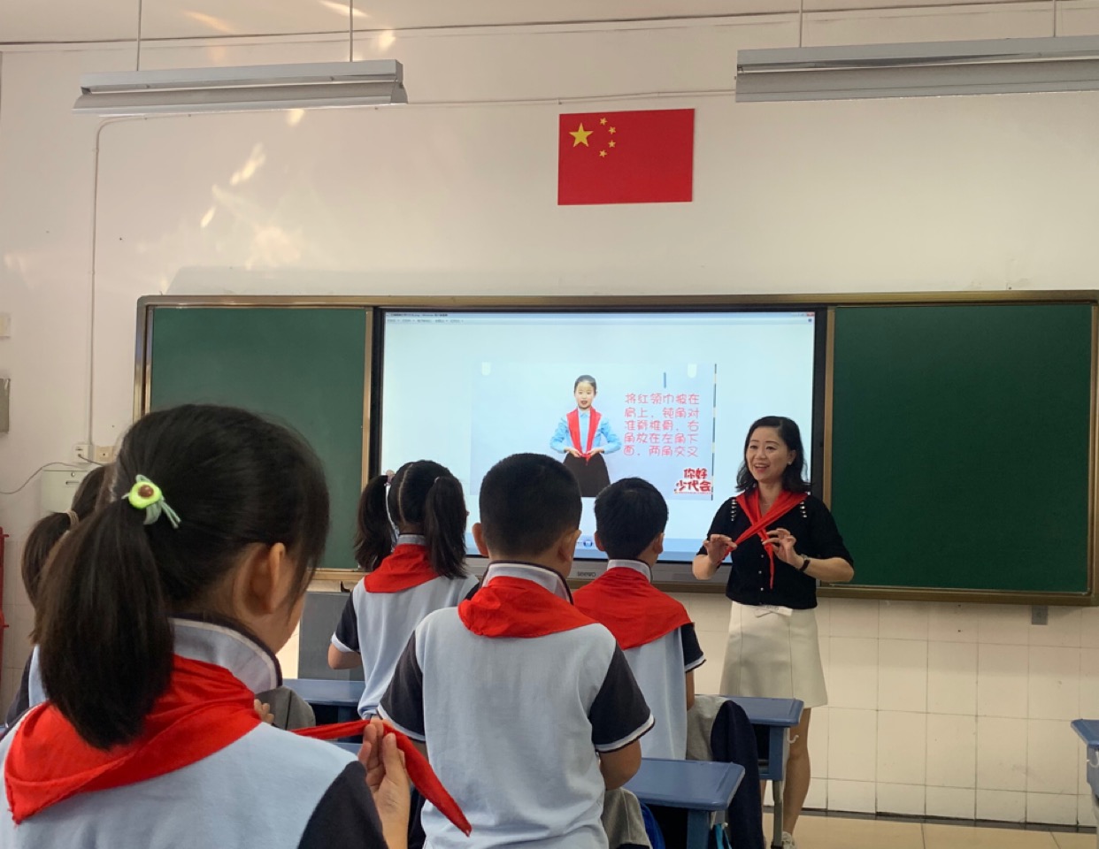 红领巾是少先队员的重要标志,会戴红领巾,热爱红领巾是每名少先队员必须做到的事情。各中队在中队辅导员的带领下,再次认真地学戴红领巾、敬队礼,各个小队之间也进行了戴红领巾比赛,让胸前的红领巾随风飘扬。