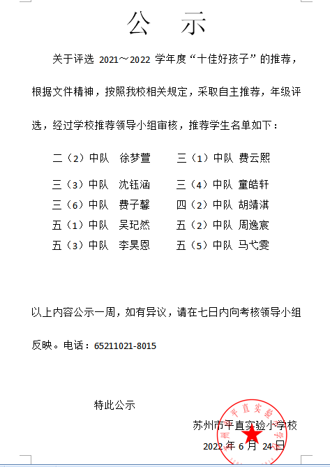万彩网100线路2021-2022学年度十佳好孩子名单公示