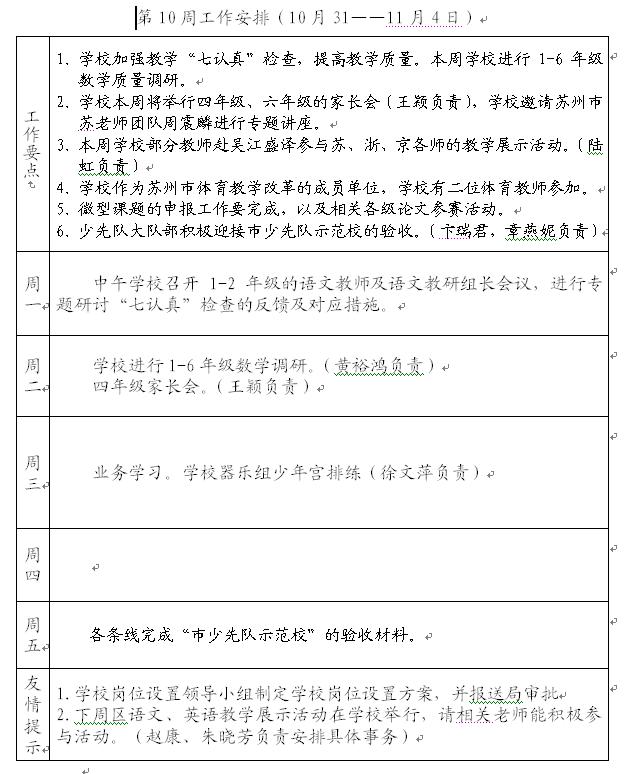 2011-2012第一学期第10周工作计划