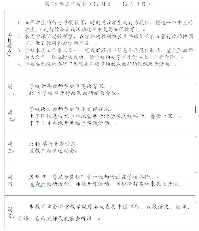 2011-2012第一学期第15周工作计划