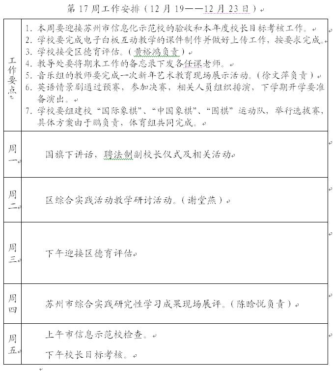 2011-2012第一学期第17周工作计划