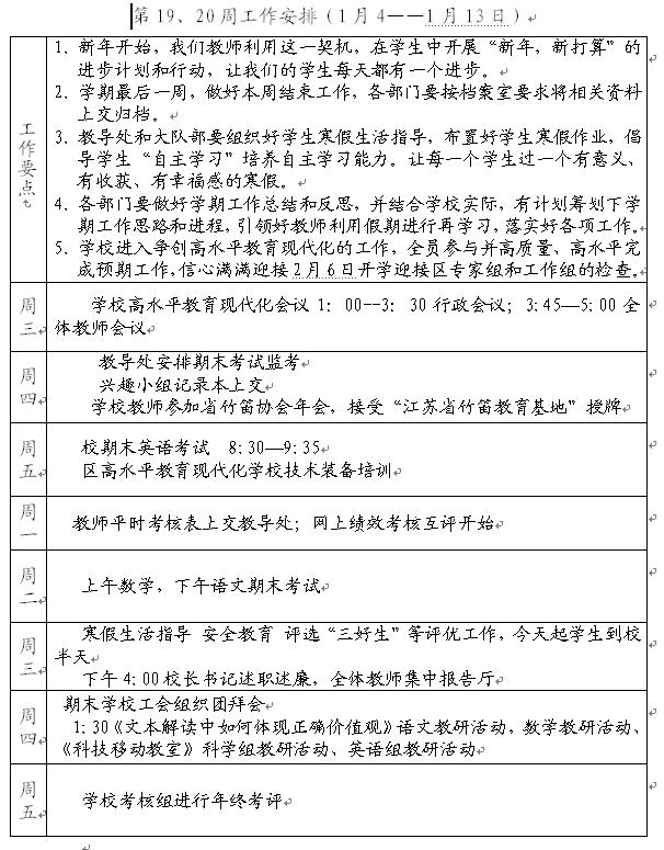 2011-2012第一学期第19.20周工作计划