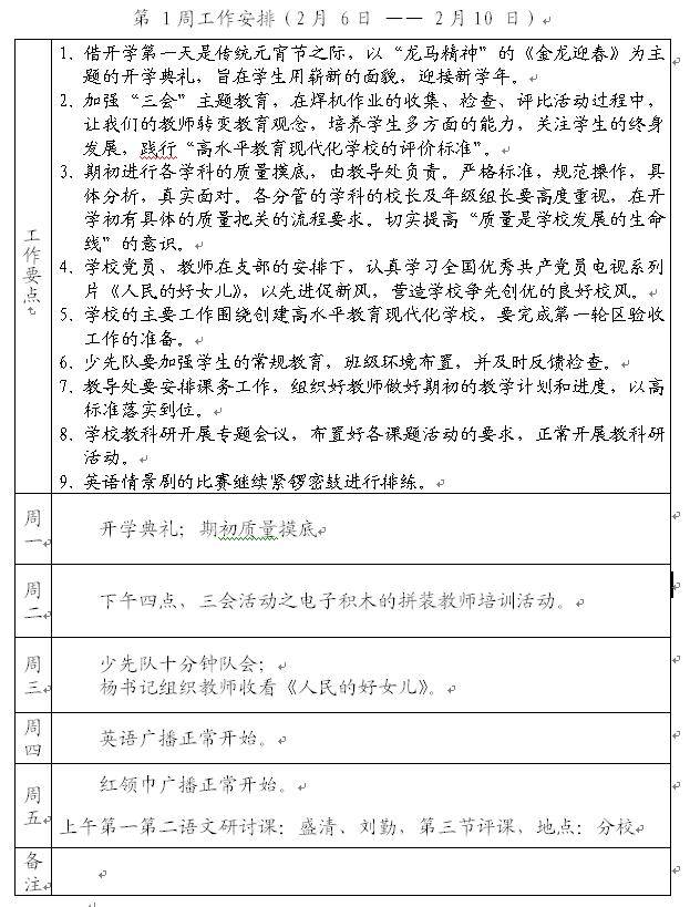 2011-2012第二学期第1周工作计划