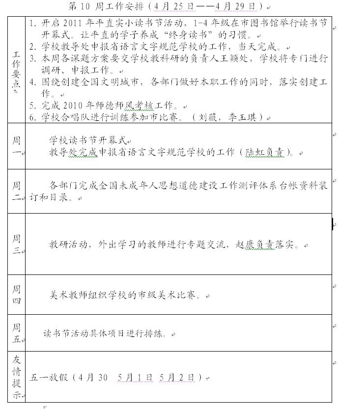 2010-2011第二学期第10周工作计划