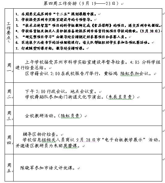2011-2012第一学期第4周工作计划