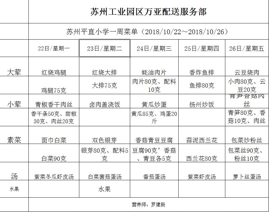 学校2018~2019学年度第一学期第7周菜单
