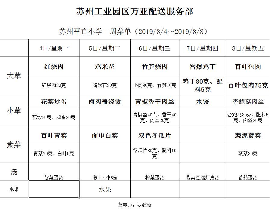 学校2018~2019学年度第二学期第3周菜单