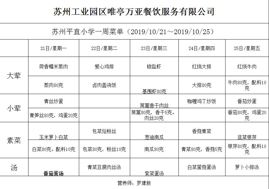 学校2019~2020学年度第一学期第7周菜单