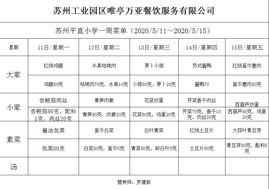 学校2019~2020学年度第二学期第5周菜单