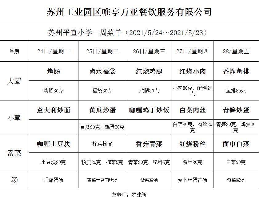 学校2020~2021学年度第二学期第15周菜单