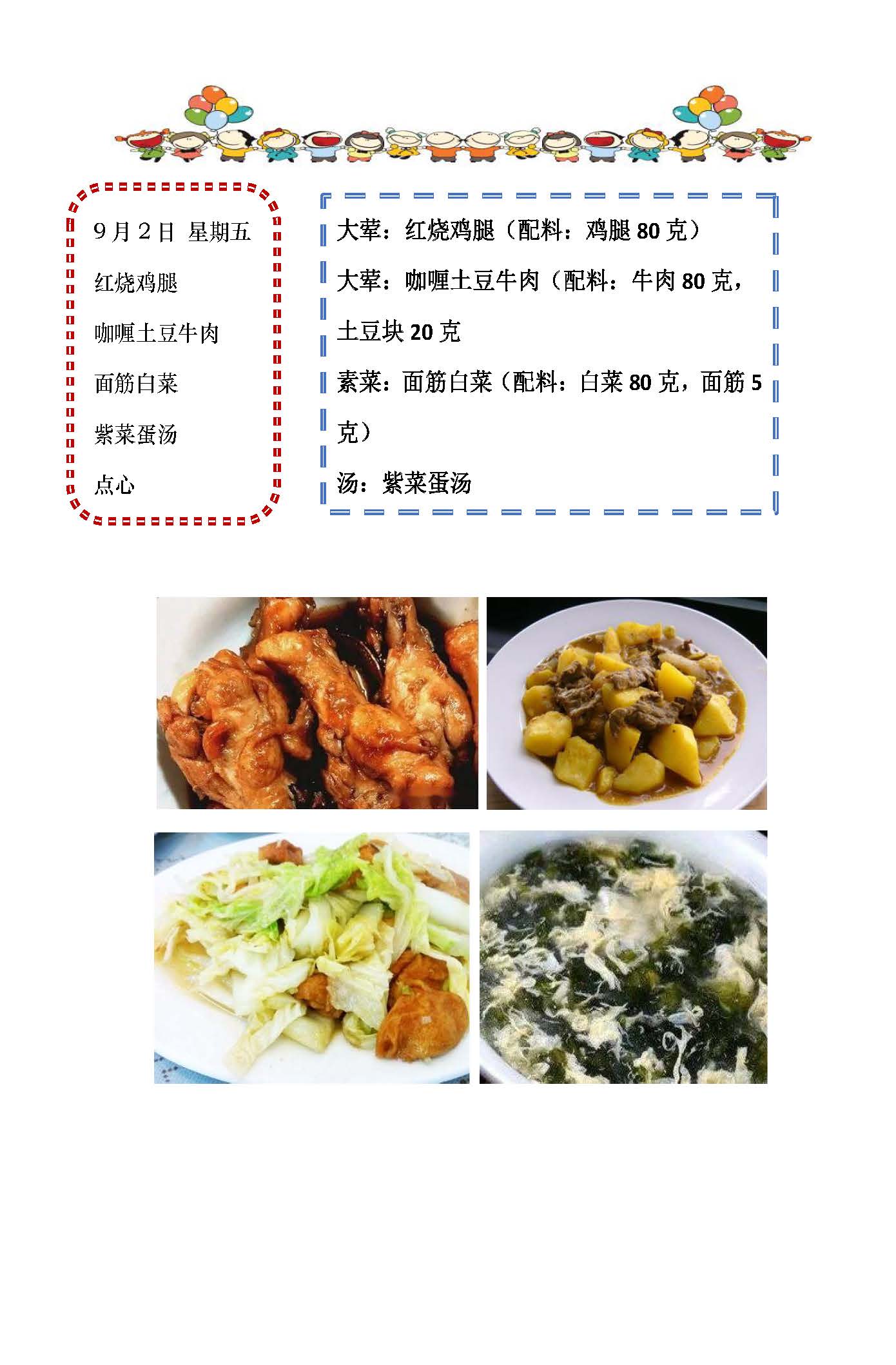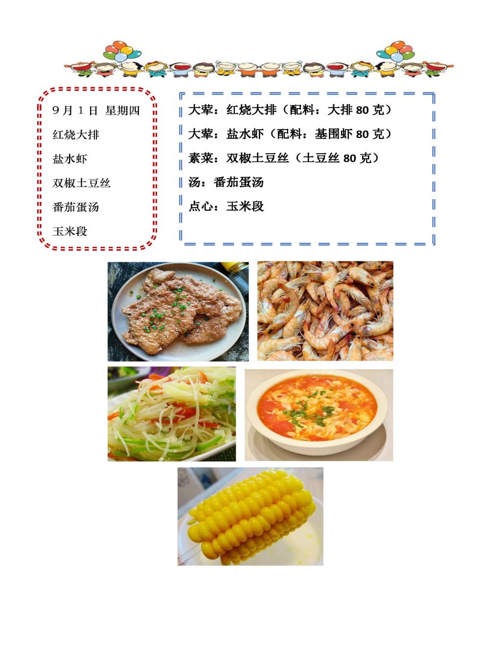 学校2022~2023学年度第一学期第1周菜单