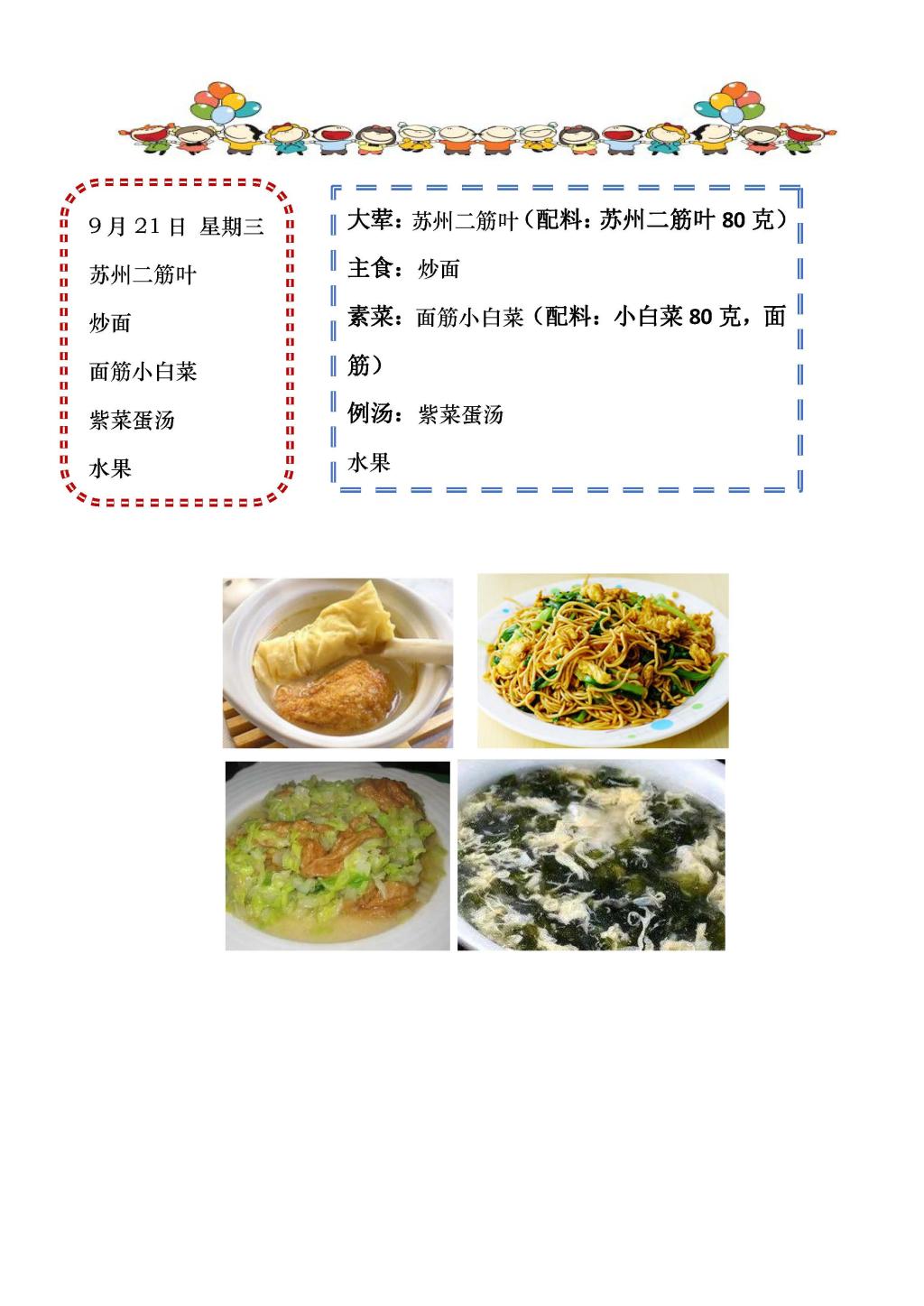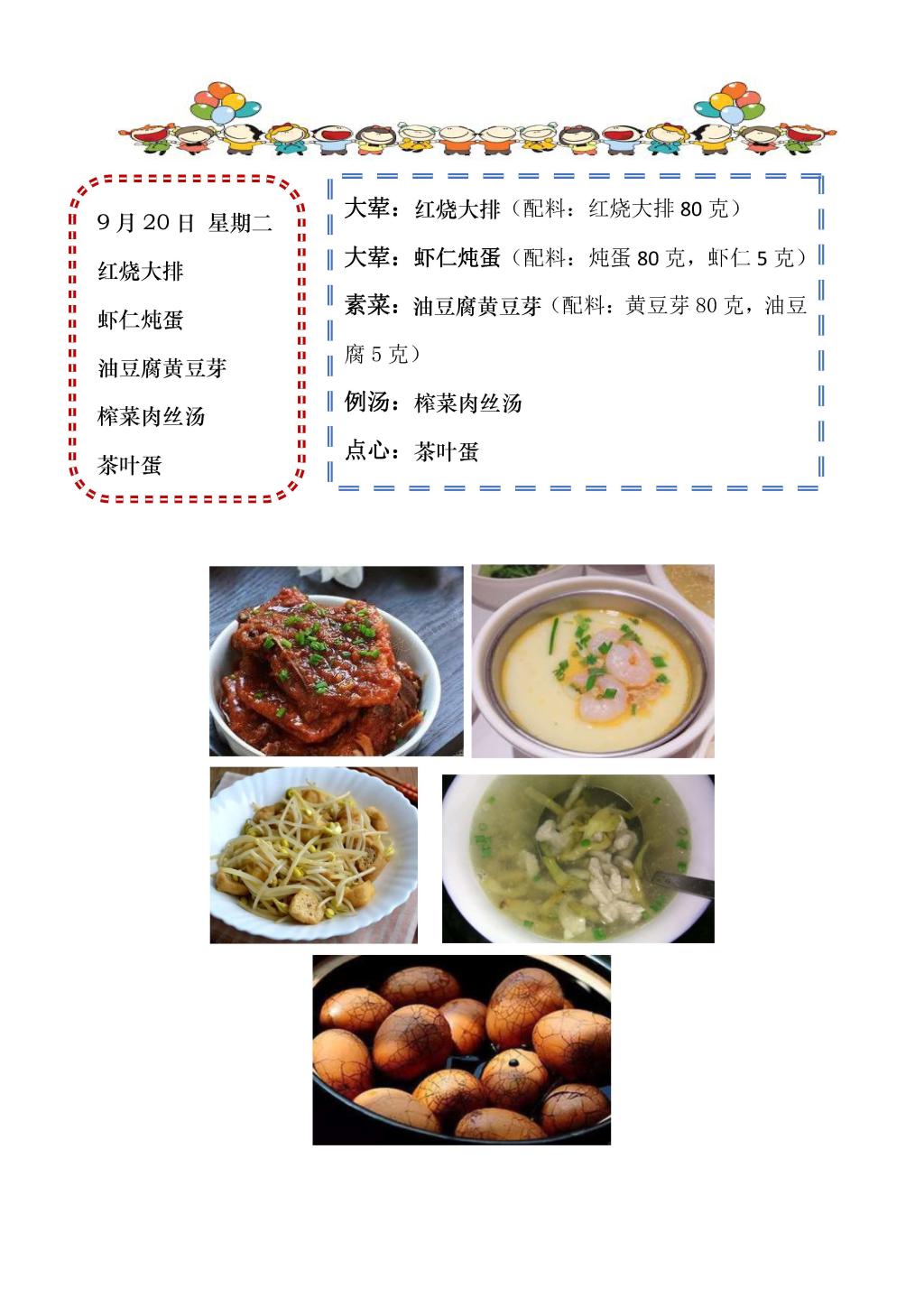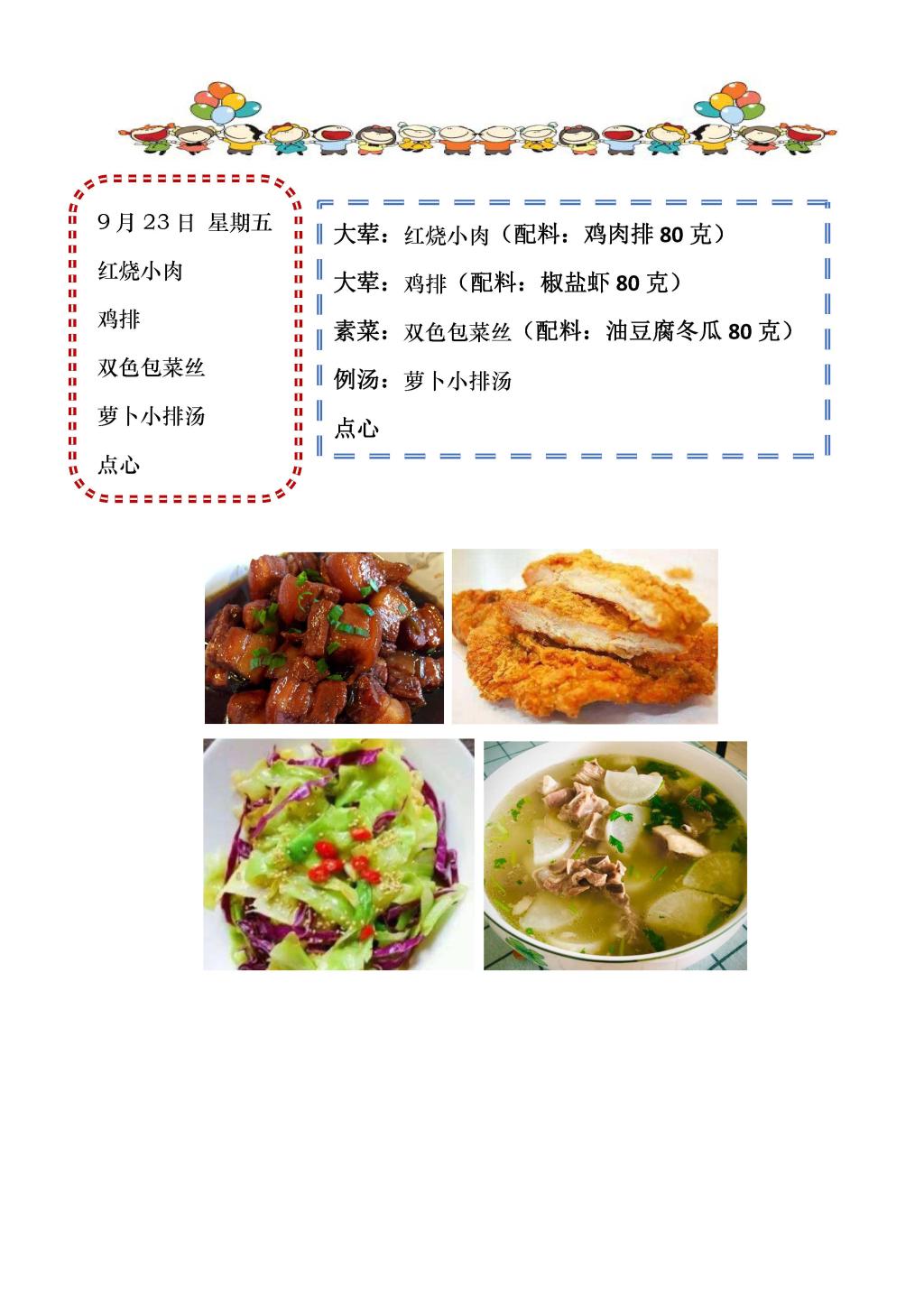学校2022~2023学年度第一学期第4周菜单