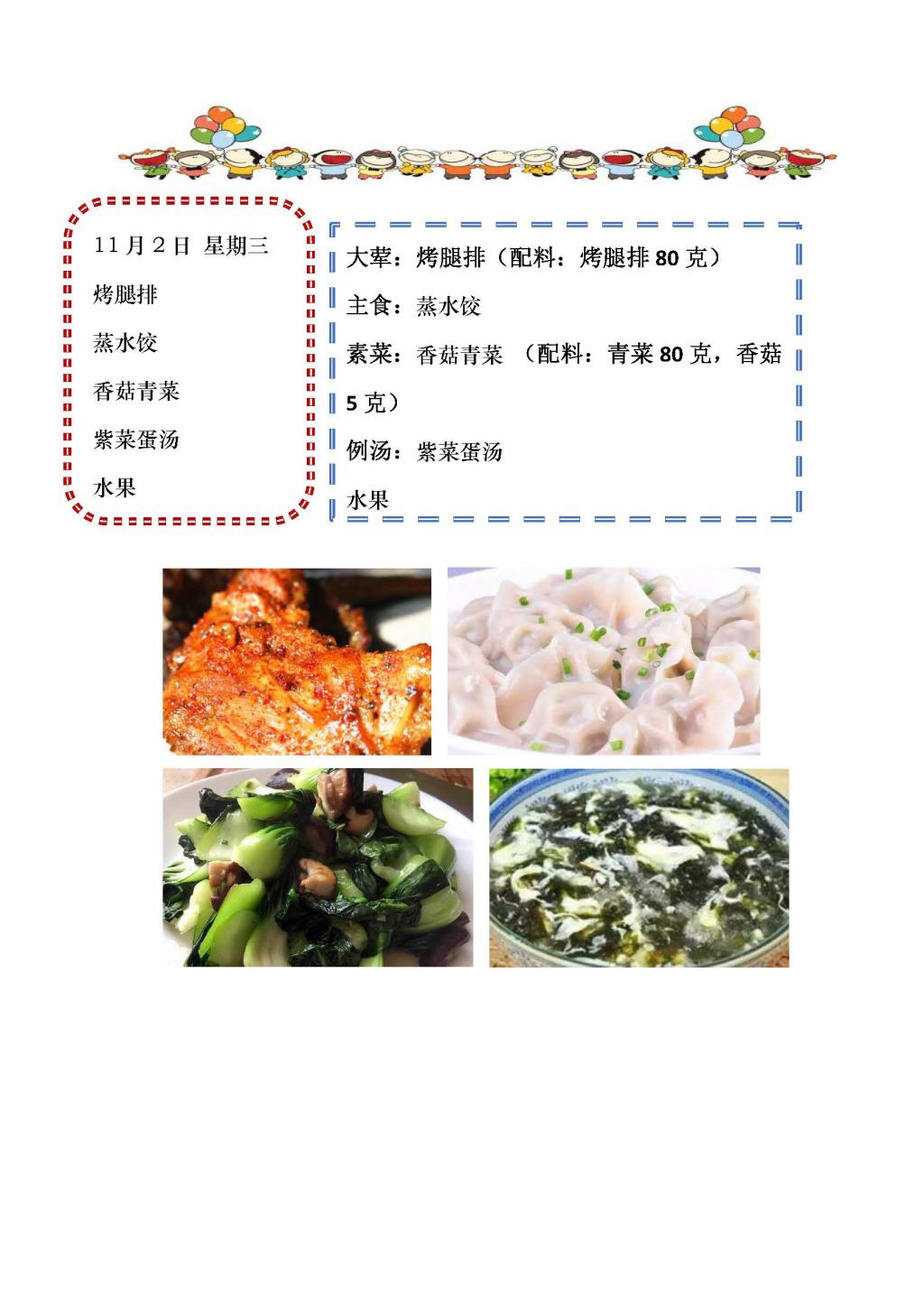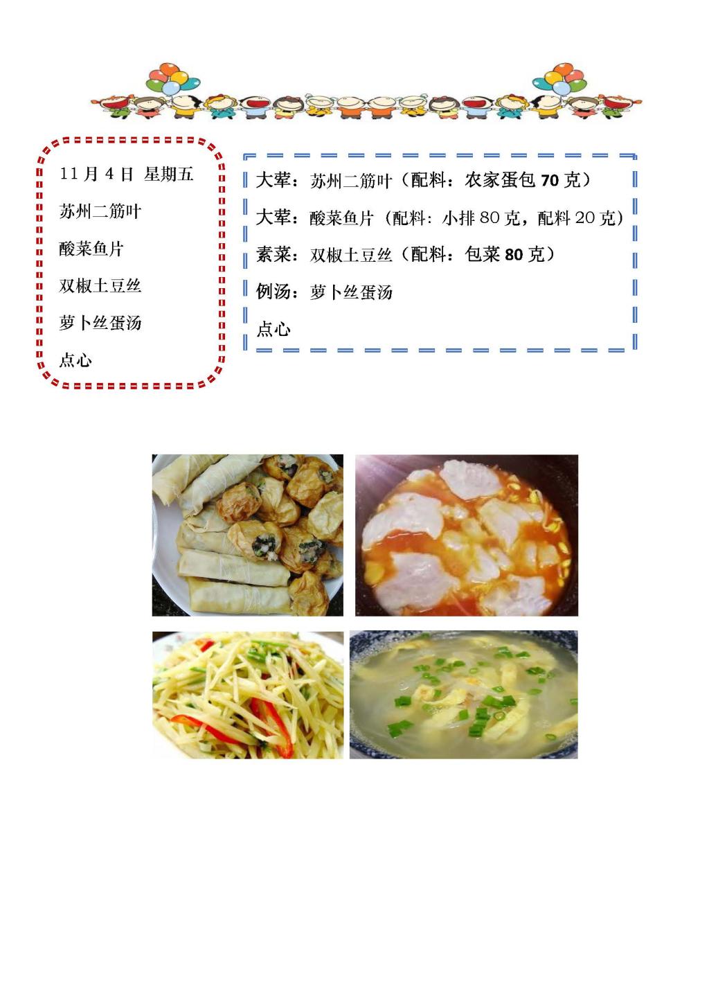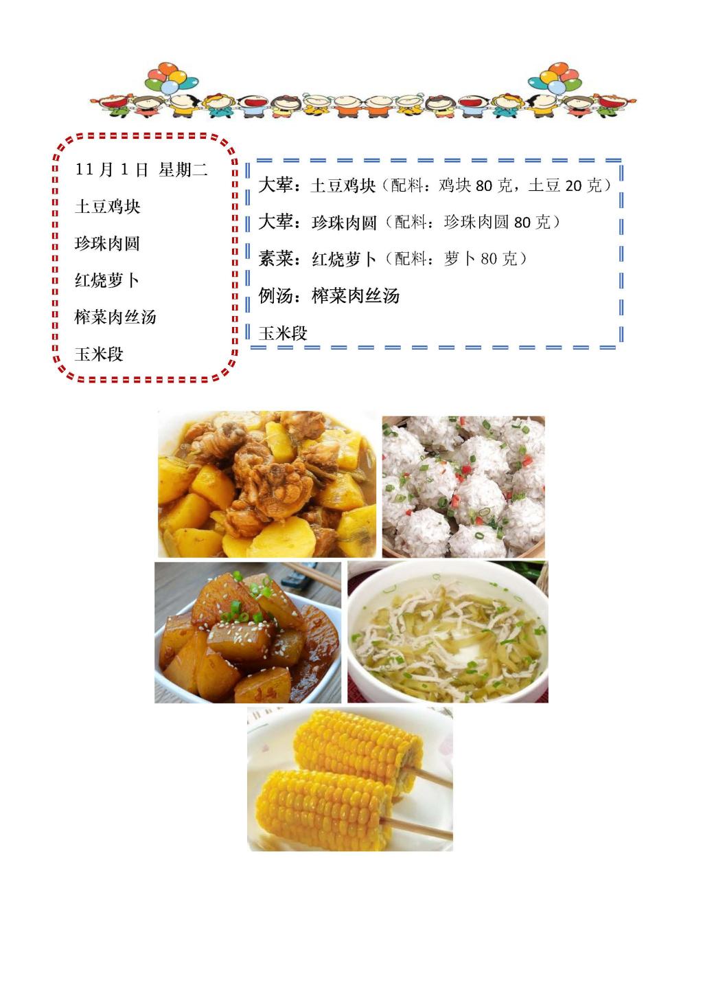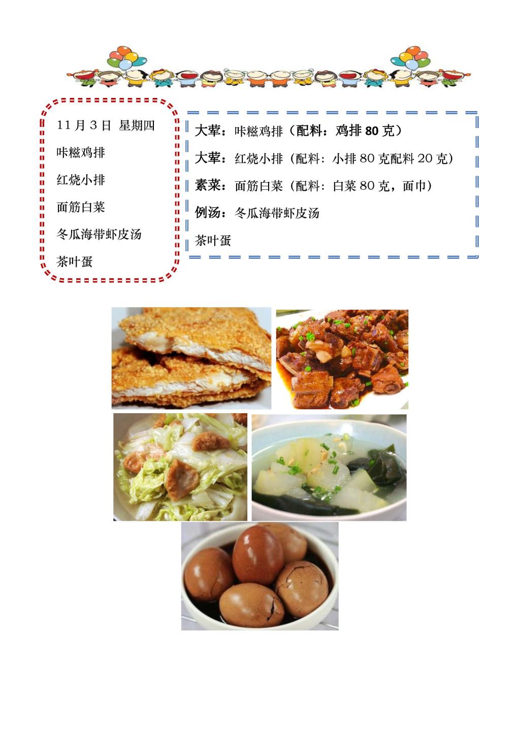 学校2022~2023学年度第一学期第11周菜单