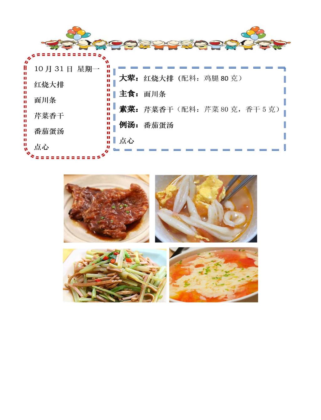 学校2022~2023学年度第一学期第10周菜单