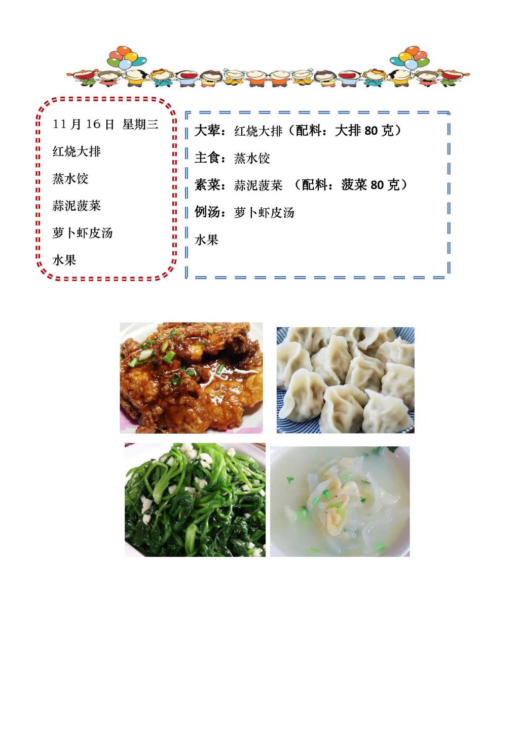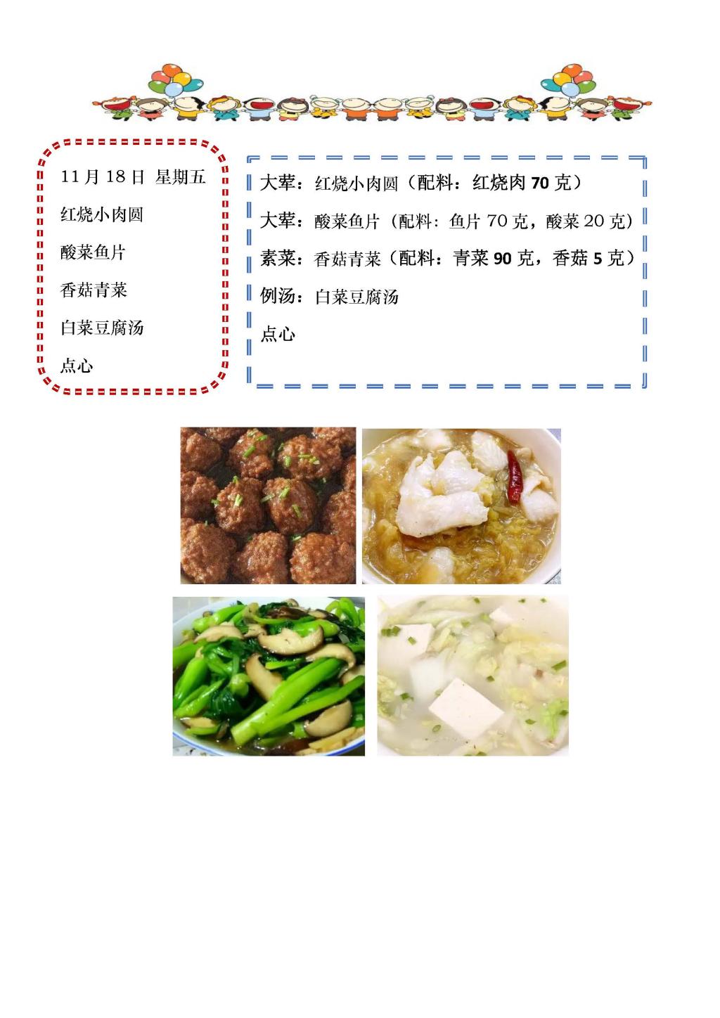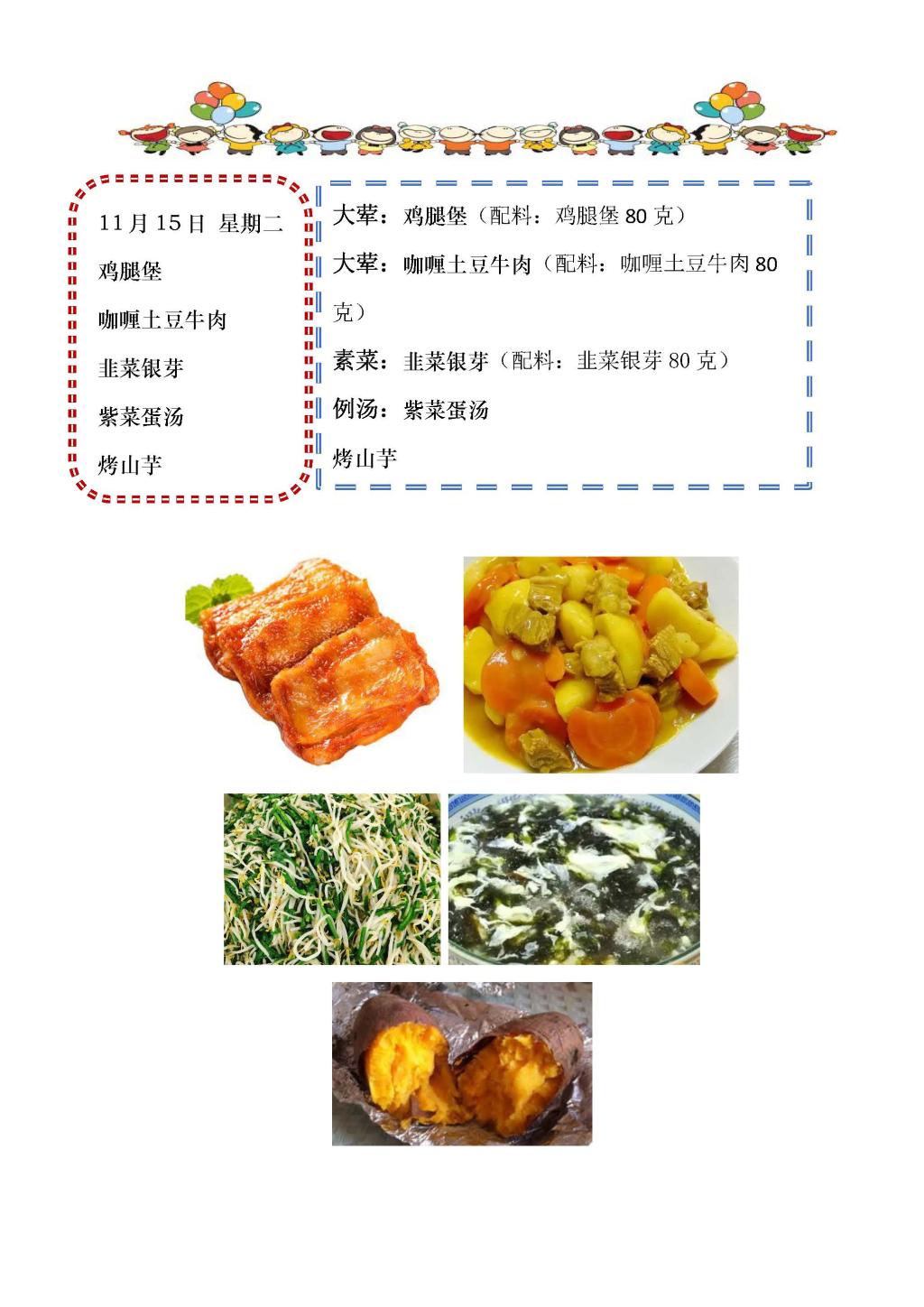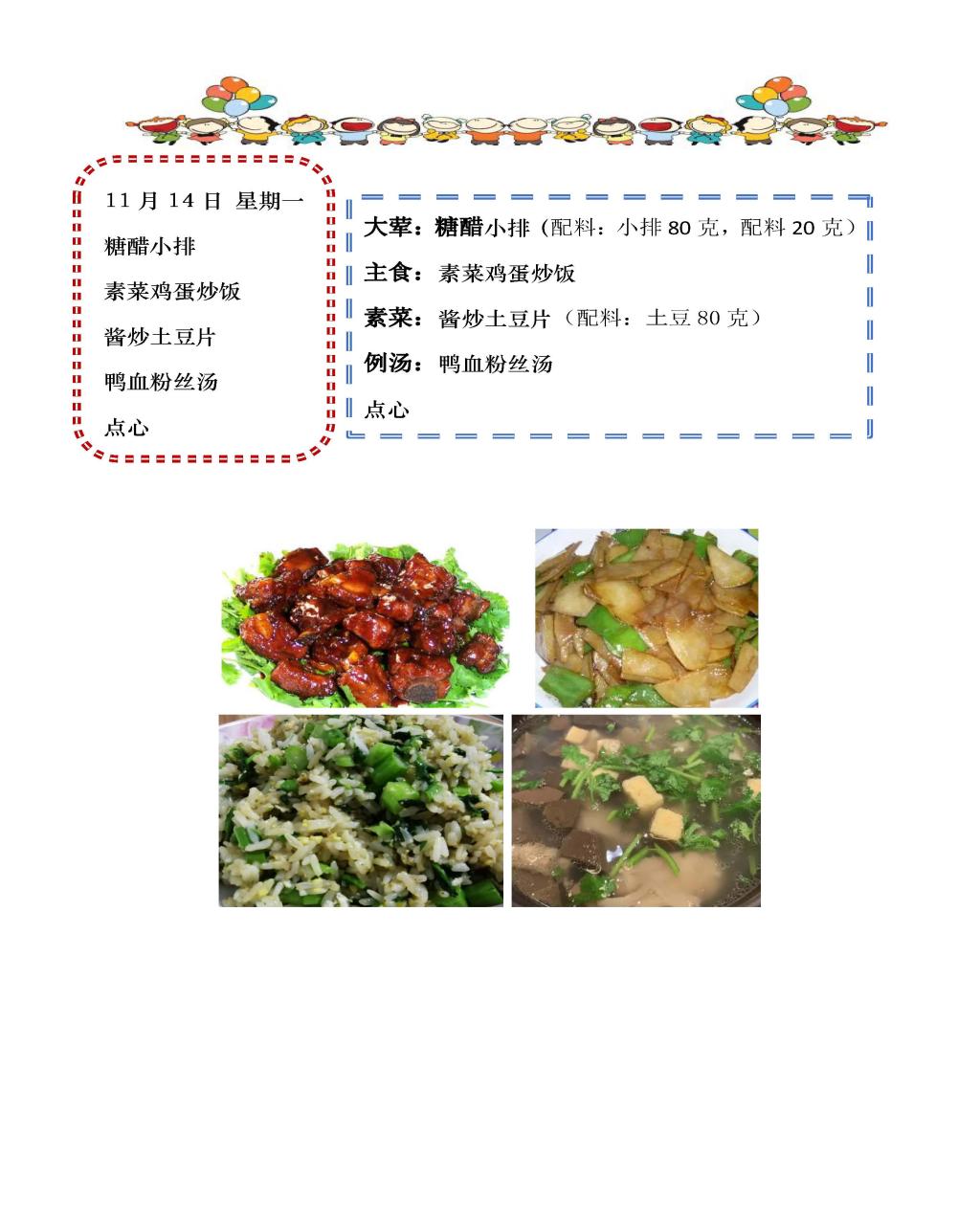 学校2022~2023学年度第一学期第11周菜单