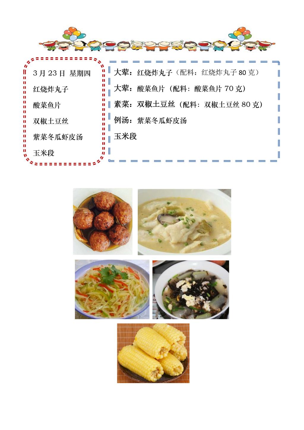 学校2022~2023学年度第二学期第7周菜单