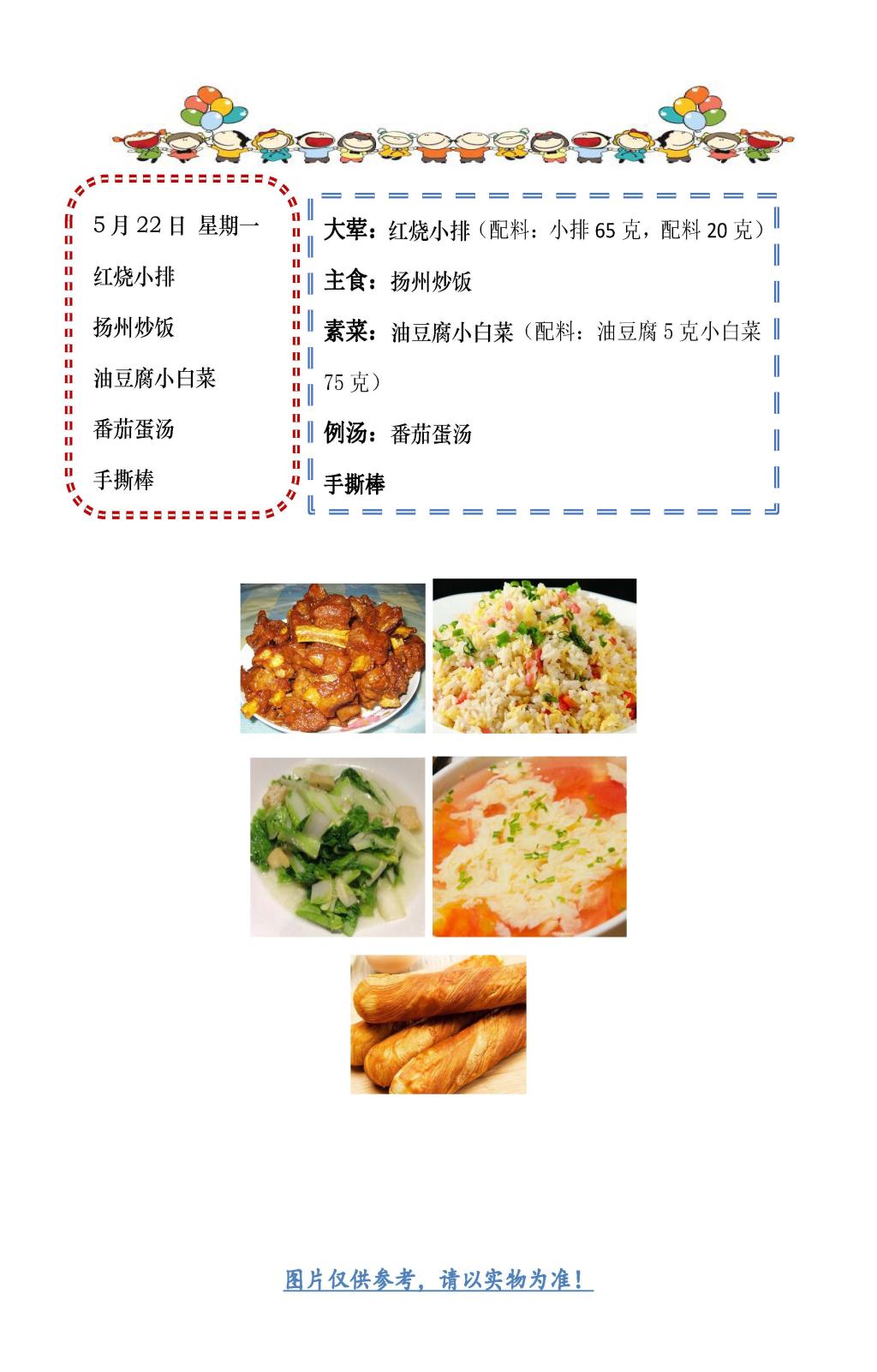 学校2022~2023学年度第二学期第16周菜单