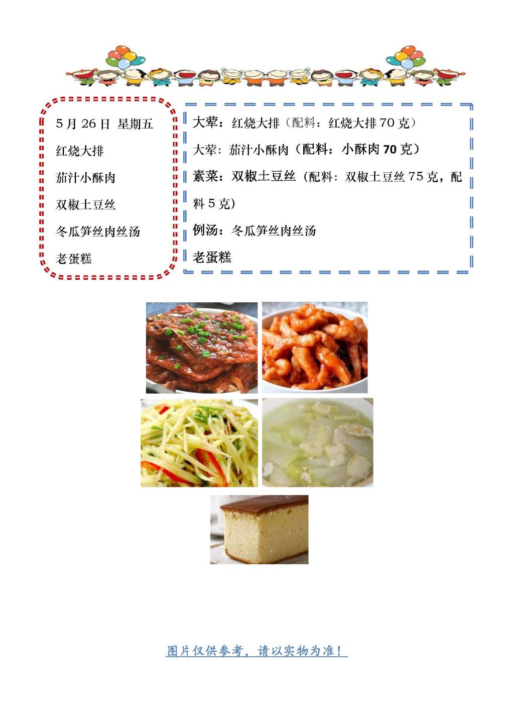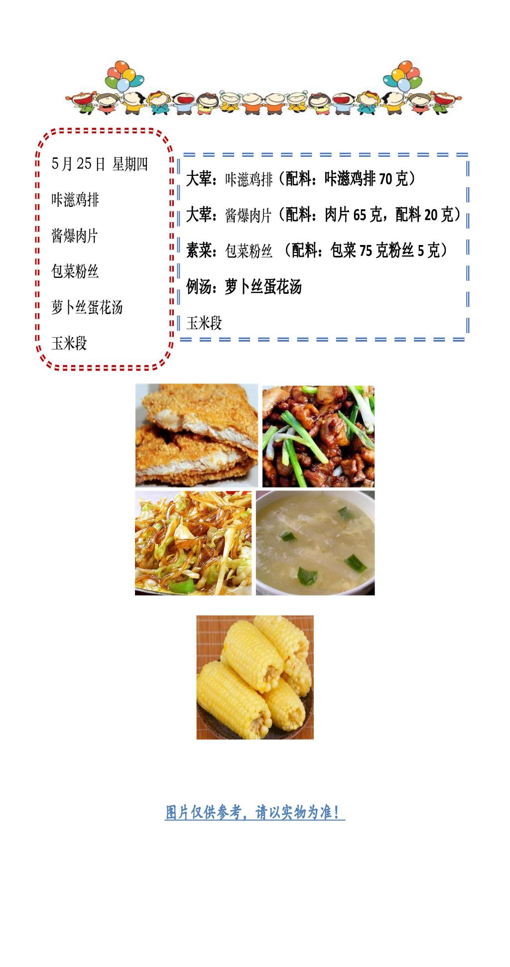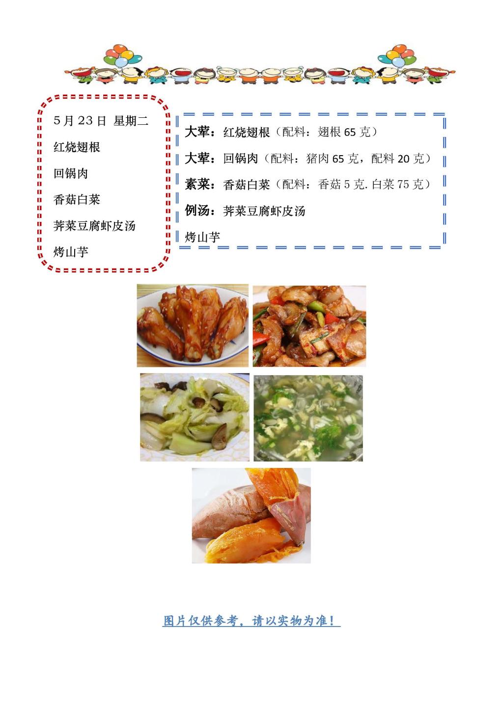 学校2022~2023学年度第二学期第17周菜单