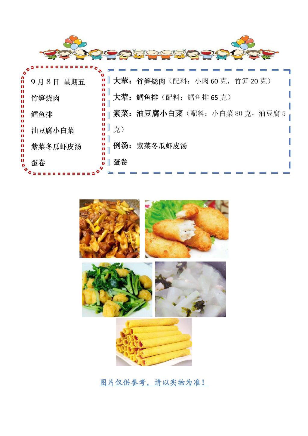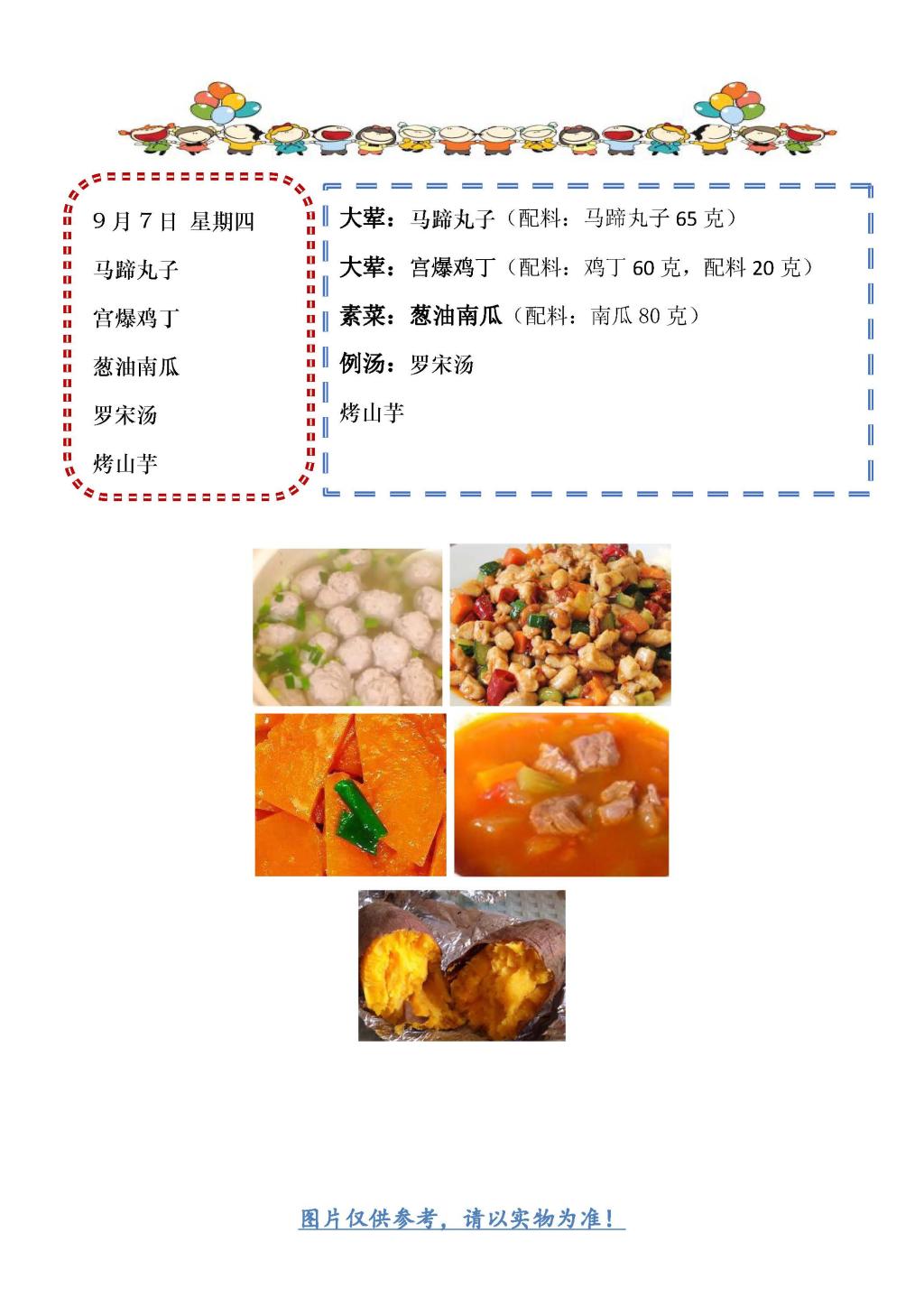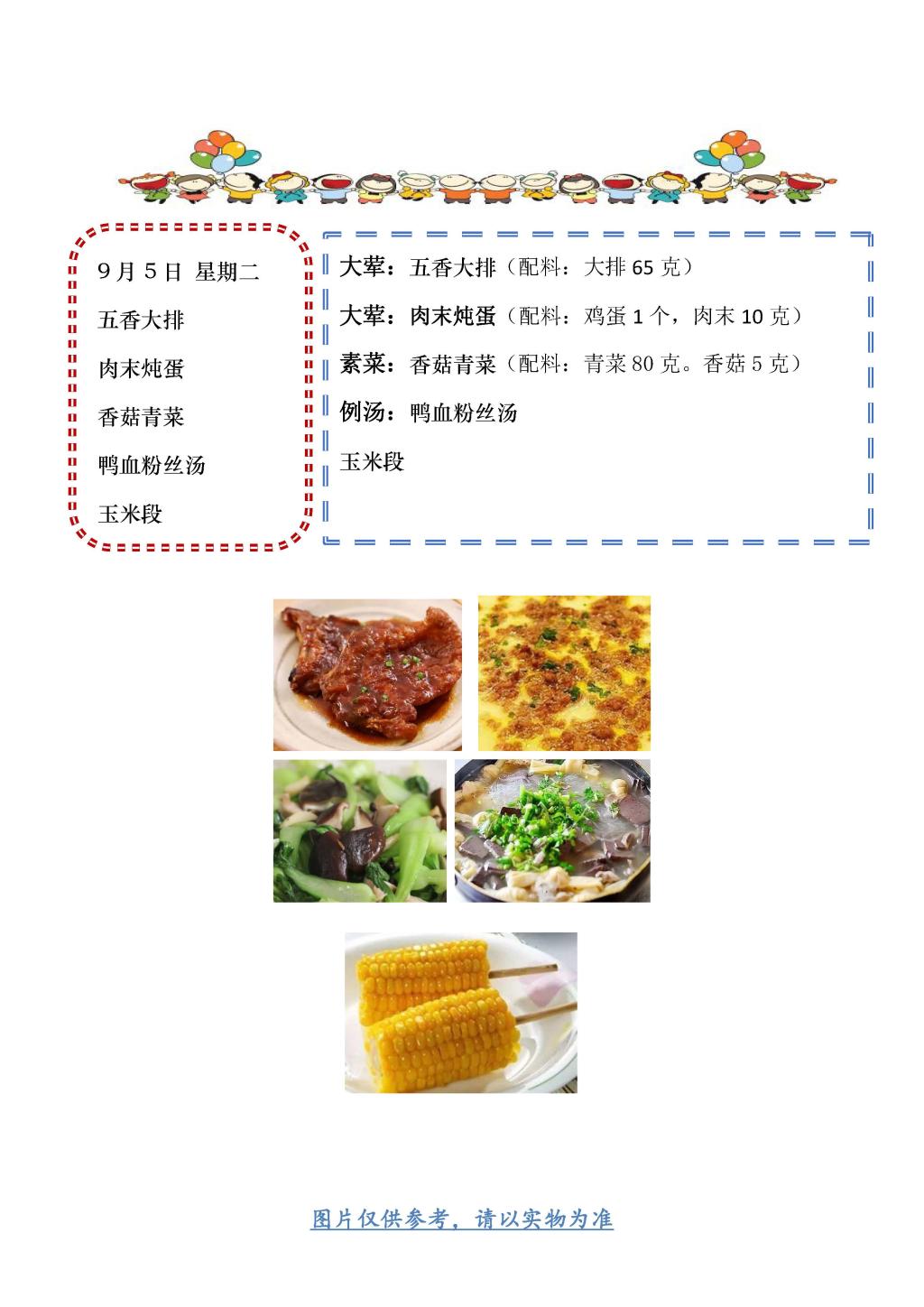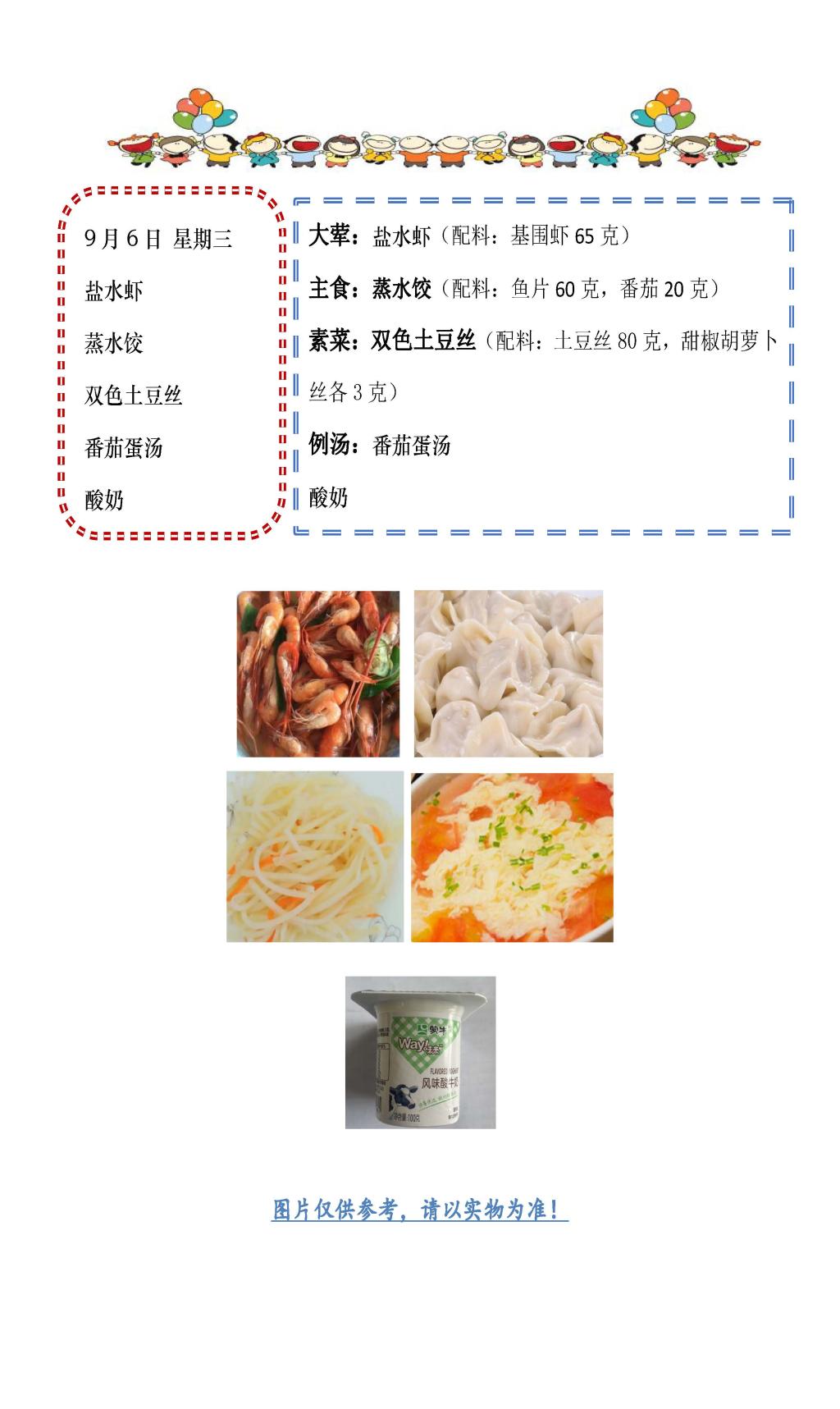 学校2023~2024学年度第一学期第1周菜单