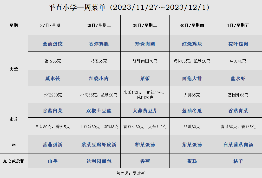 一周菜单(2023/11/27~2023/12/1)