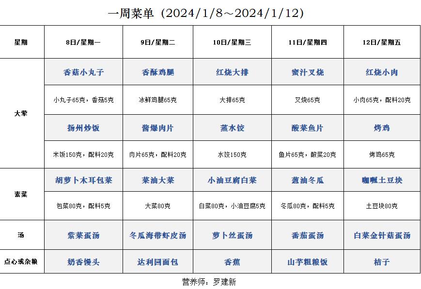 一周菜单(2024/1/8~2024/1/12)