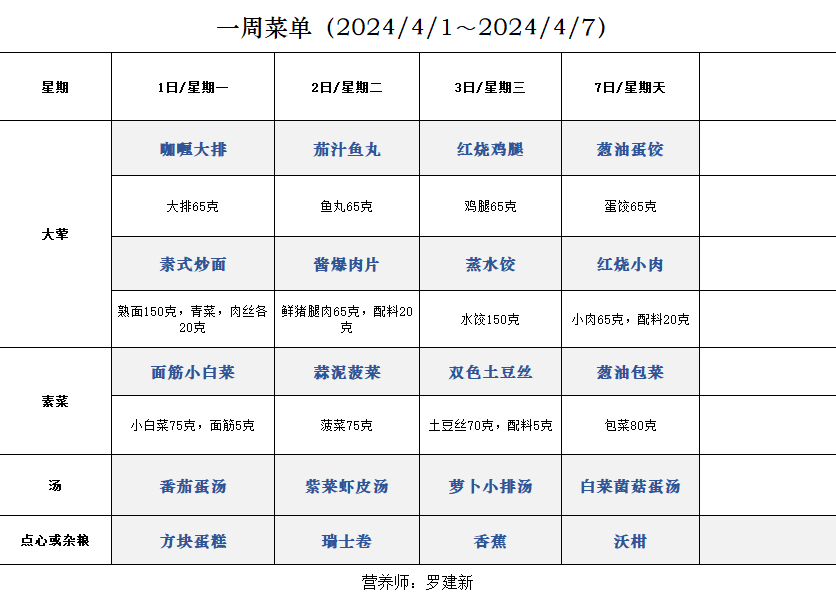 一周菜单(2024/4/1~2024/4/7)
