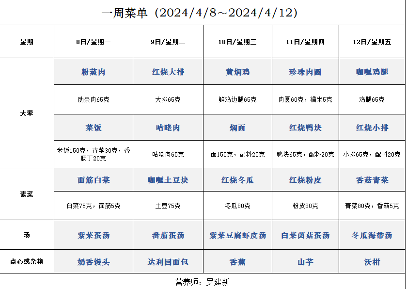 一周菜单(2024/4/8~2024/4/12)