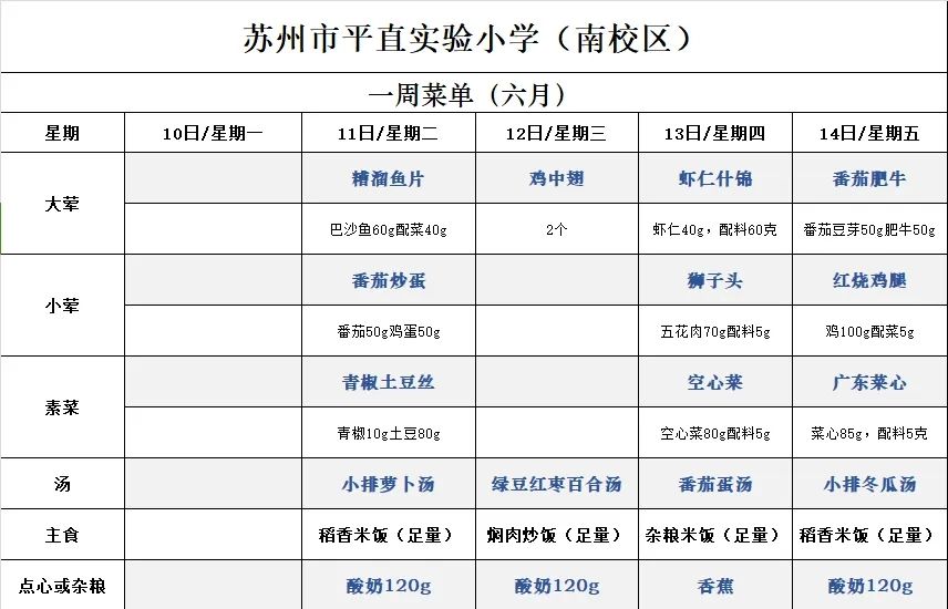 一周菜单(2024/6/11~2024/6/14)