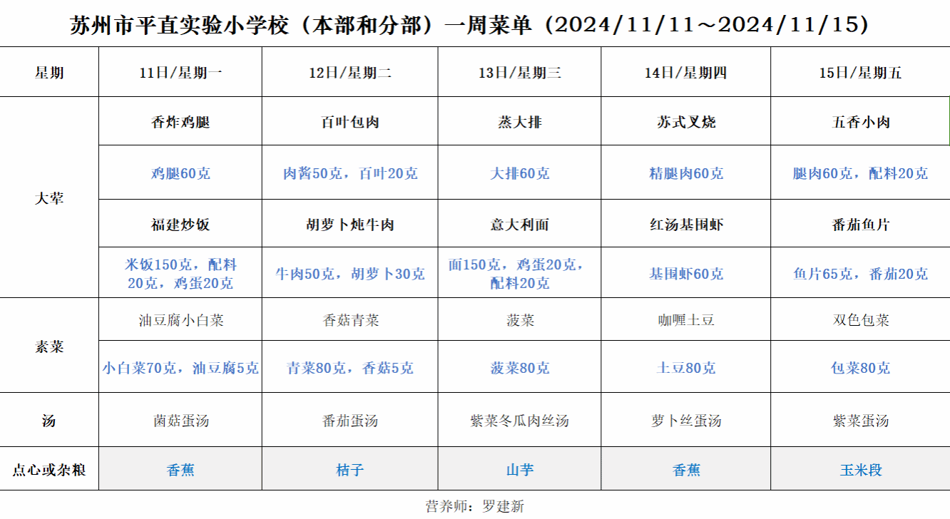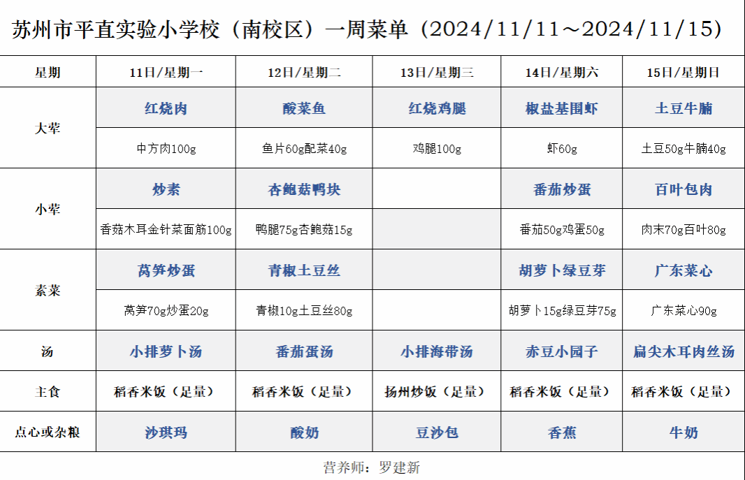 一周菜单(2024/11/11~2024/11/15)