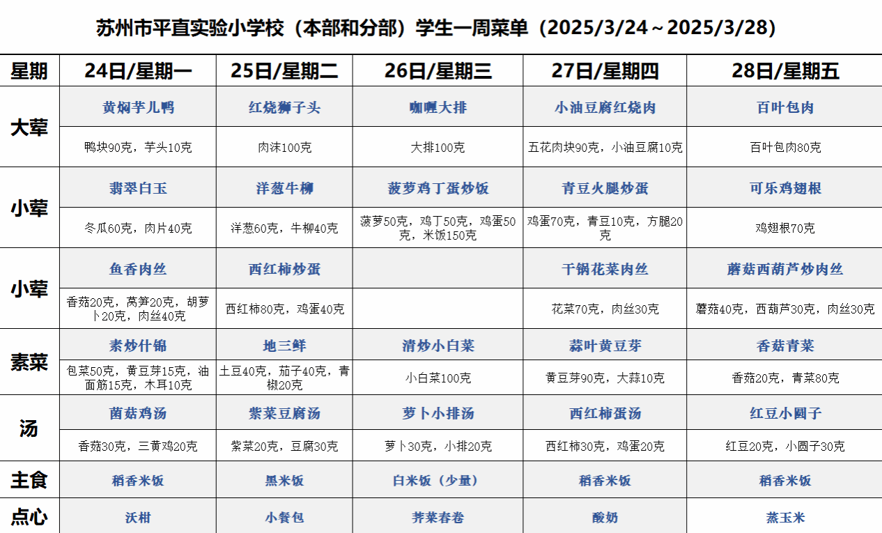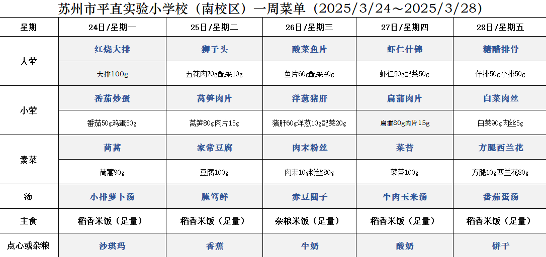 一周菜单(2025/3/24~2025/3/28)