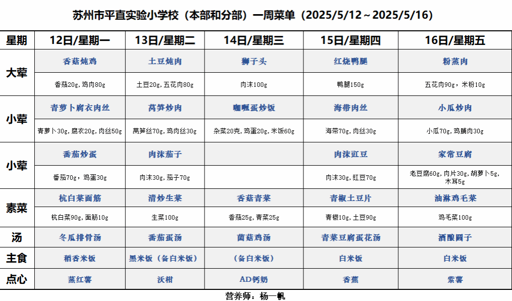 一周菜单(2025/5/12~2025/5/16)