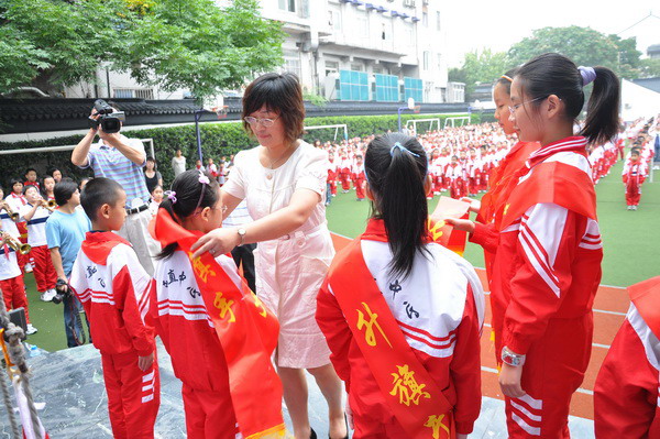 徐校长为升旗手授标志