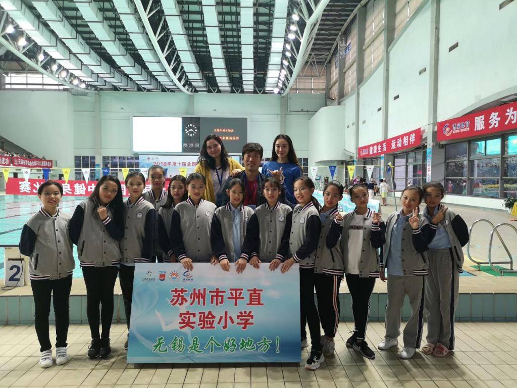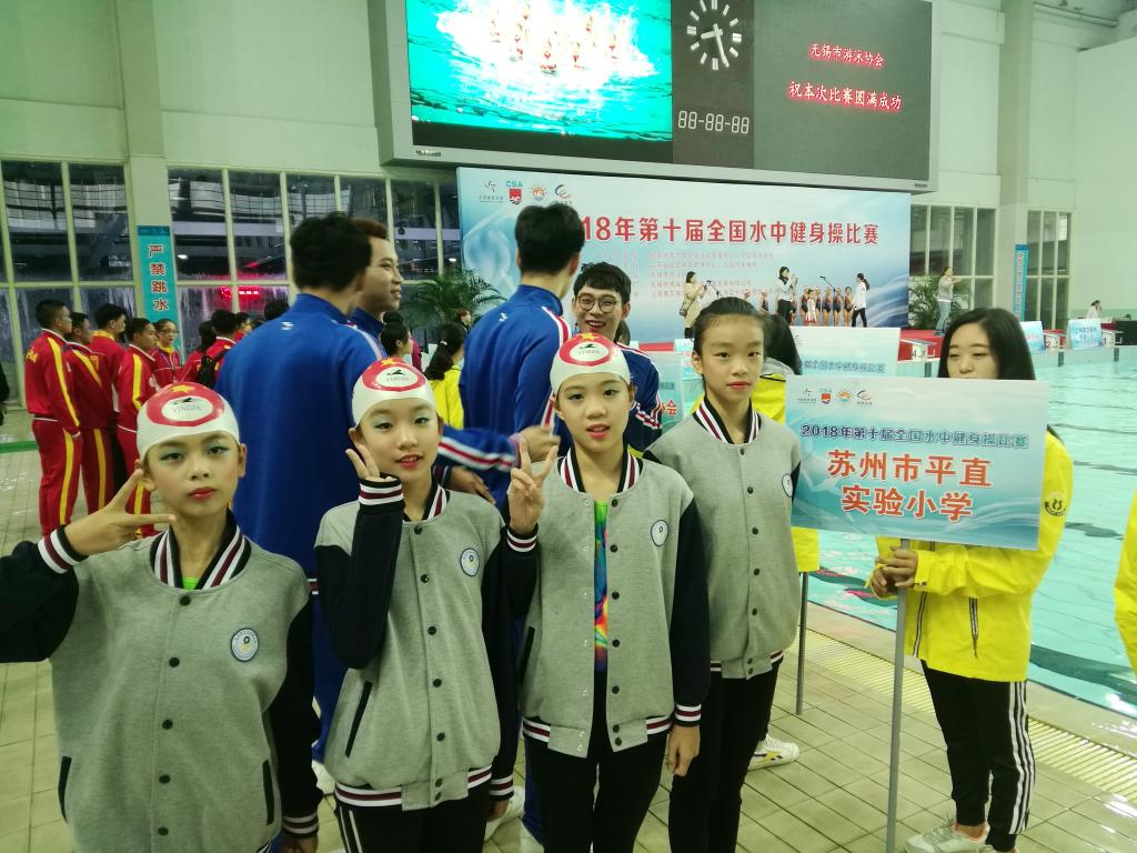 113日至4日,第十届全国水中健身操比赛在无锡游泳跳水馆举行,平直实小组队参加此次比赛,她们是韩舒窈、罗紫茵,叶璐嘉,朱睿涵,胡可欣,杨馨怡,时佳音,尤婧瑶,徐雯熙,蔡榕洁,仲时羽,姚欣彤,蒋雨桐。同时,朱茜,黄熙瑶,钱展妍,邹乐怡,杨济萌,邢俊杰6名队员代表苏州奧妮花样游泳俱乐部参赛。