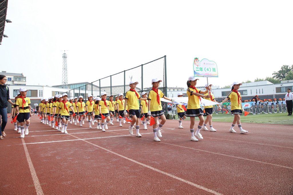 上午八时,伴随着雄壮的《运动员进行曲》,该校一至六年级35个代表队在国旗队、校旗队、家长裁判员队、家长志愿者代表队的引领下,迈着矫健的步伐,喊着响亮的口号,依次经过主席台。
