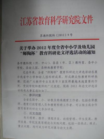 关于举办2012年度全省中小学及幼儿园“师陶杯”教育科研论文评选活动的通知