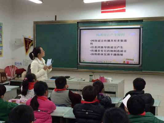 “网络谣言是什么” 、“网络谣言产生的原因是什么”、“造成的危害是什么?”、“转发多少次网络谣言可入刑?”、“我们又该怎样抵制网络谣言?”……围绕这一个个问题,宣传课上通过微电影、案例分析、辩论会、趣味竞答等丰富多彩的形式,深入浅出地教育了同学们在日常接触网络过程中,要懂得警惕辨别网络谣言,不轻信,不围观,不传播,做一个知法、懂法、守法的小公民。