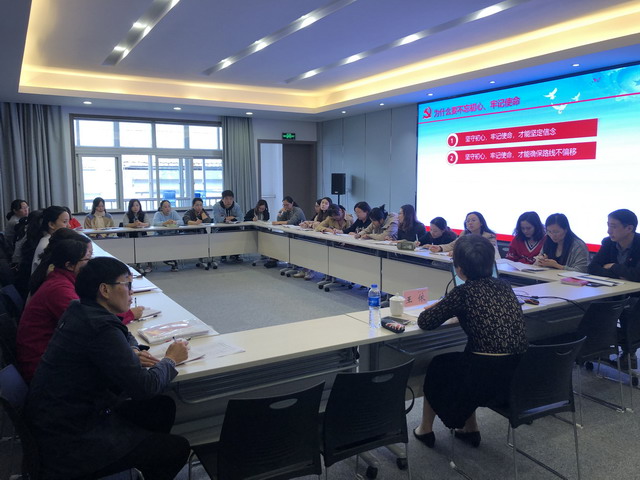 她首先回顾了中国共产党成立98年来的光辉历程、伟大壮举,随后具体阐述了此次“不忘初心、牢记使命”主题教育的要求,共产党人的初心和使命是什么,为什么要不忘初心、牢记使命,并就如何做新时代追梦人,勉励全体党员教师要不忘初心,坚守信仰,在“平凡”中创造“不平凡”;要知行合一,深入群众,在“无形”中提高“影响力”;要直面问题,勇于担当,在“服务”中做个“好党员 ”。